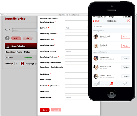 Add, store and edit all your receipient details. With validation in real time be assured you are adding the required bank details.