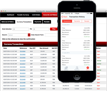 The currency dashboard gives you a real time, complete overview of everything you require to process your currency transactions and international payments.